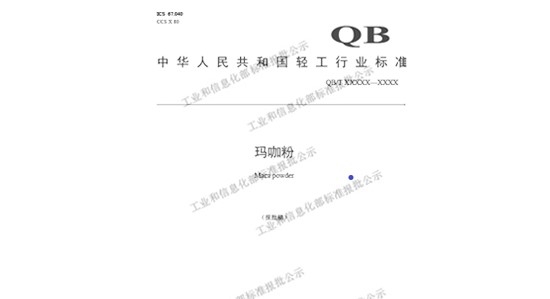 4月24日,中华人民共和国工业和信息化部宣布了2022年第10号通告,其中由健康工业公司国珍健康研究院作为牵头起草单位,联合中国食品发酵工业研究院、烟台十大电子游戏平台网站健康工业有限公司等配合申报的《玛咖粉》行业标准通过工信部审批,将于2022年10月1日正式实施。