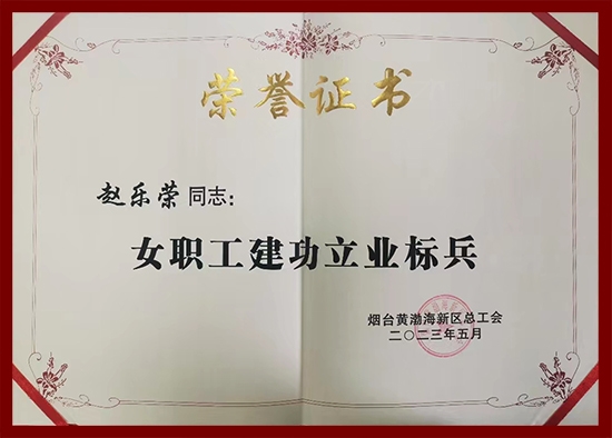 近日,烟台黄渤海新区总工会决定选树表扬一批女职工先进集体和先进个人,烟台十大电子游戏平台网站健康工业日化有限公司(简称烟台日化公司)职工赵乐荣同志因结果优异、孝敬突出,喜获“烟台黄渤海新区女职工建功立业尖兵”荣誉称呼。