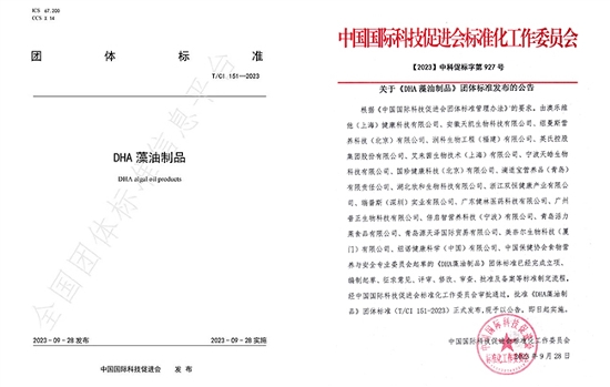 健康工业公司牵头起草的《DHA藻油制品》团体标准正式宣布